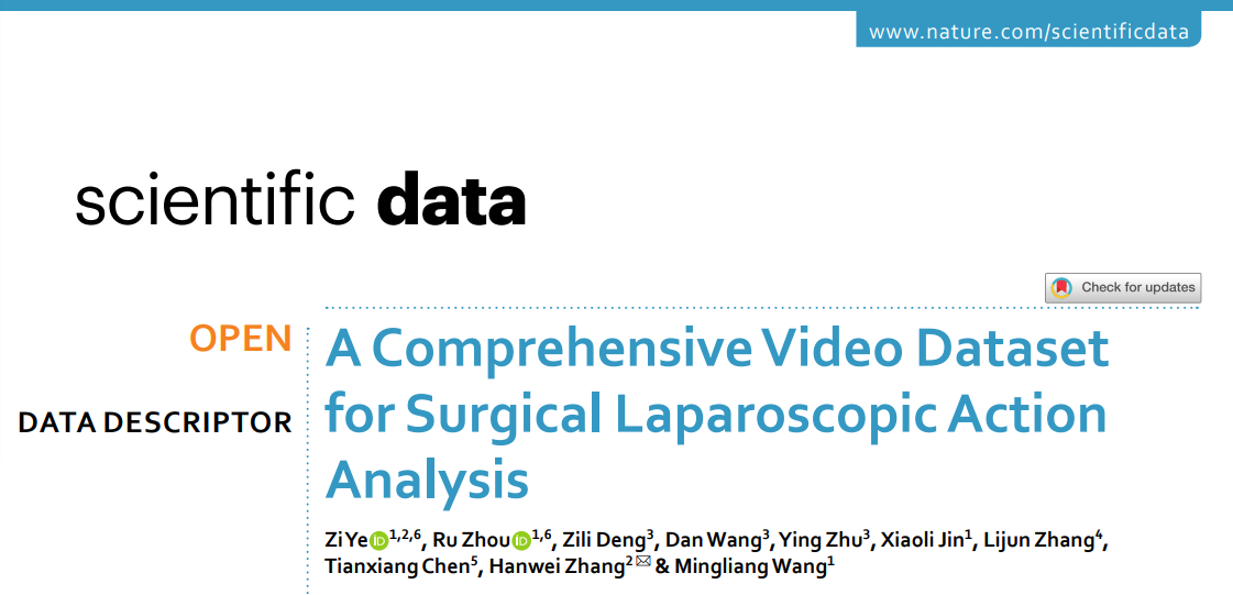 近日,中科院软件所与瑞金医院联合研究的《外科腹腔镜手术动作分析数据集》成功发表于国际顶级学术期刊Nature(《Scientific Data》IF 5.8;JCR Q1)。