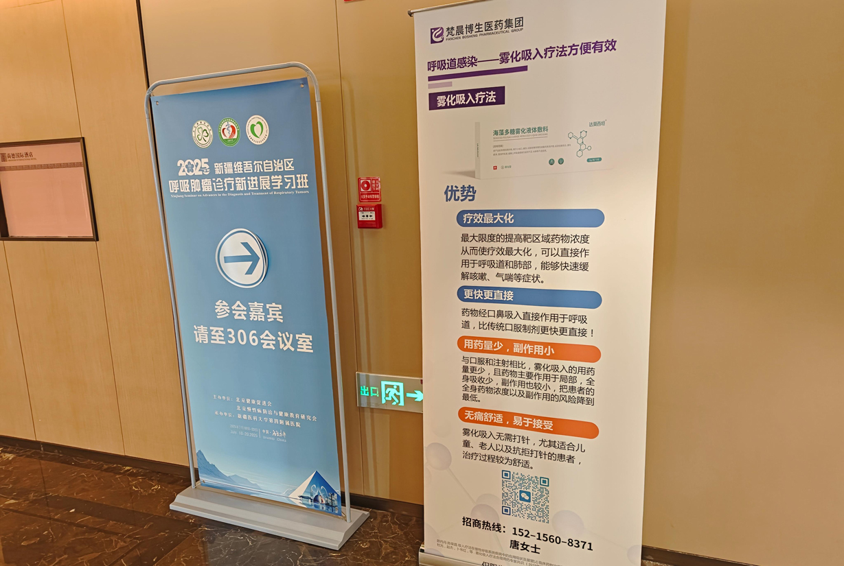 2025年7月18日至20日,2025新疆维吾尔自治区呼吸肿瘤诊疗新进展学习班在乌鲁木齐成功举办。全国的呼吸科、肿瘤科及重症医学领域专家齐聚一堂,聚焦呼吸道疾病防治前沿技术。作为生物医药领域的创新标杆,梵晨博生医药集团携其在上呼吸道感染与流感防护领域的两款创新产品——达莫西坦®海藻多糖雾化液体敷料和漱沐坦®医用喷漱防护无菌液体剂亮相大会,创新产品直击临床痛点。